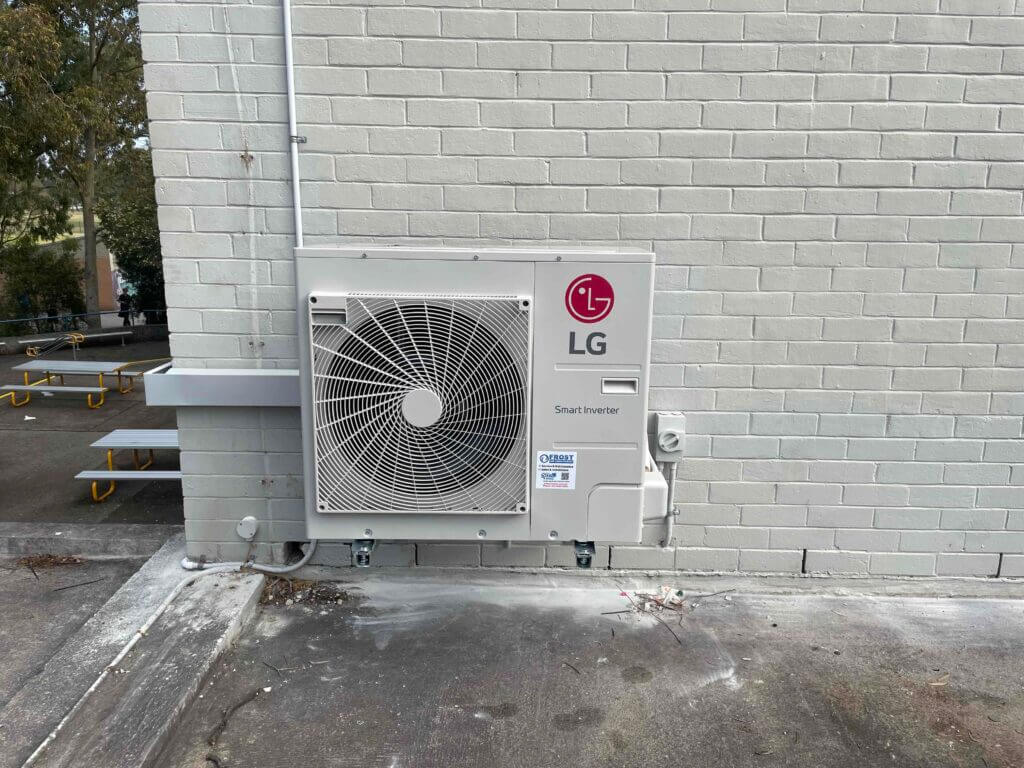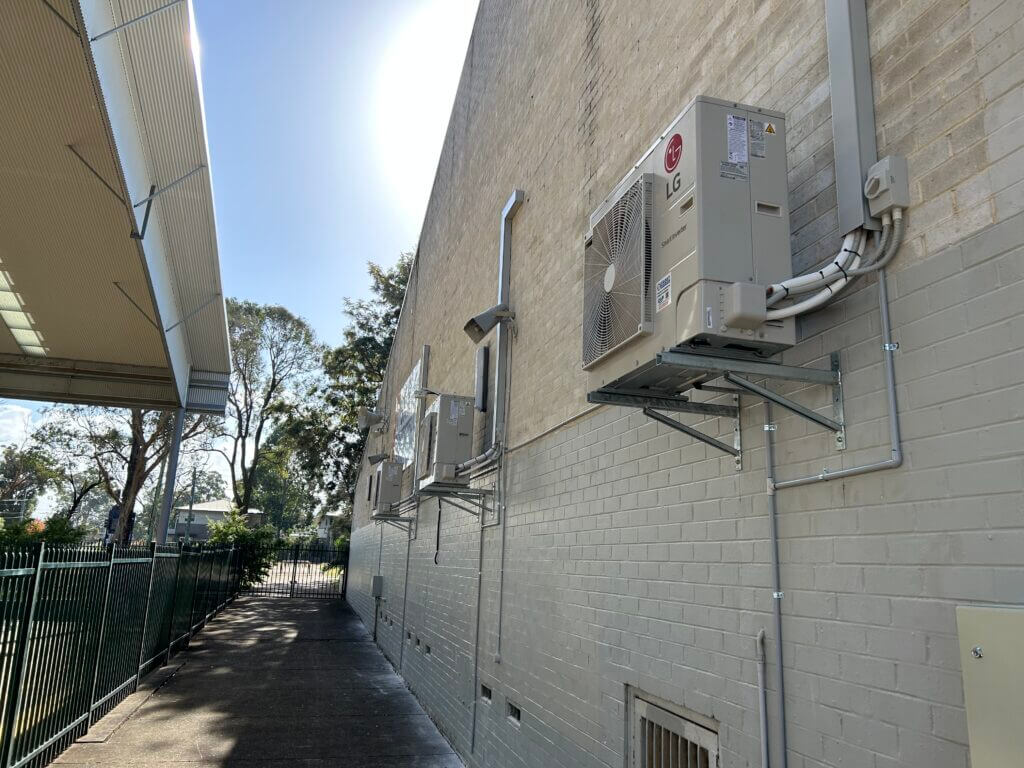Frost Air Conditioning supplied and installed 8 x LG Electronics Split Systems in the Chifley College Shalvey Campus while placing all the outdoor compressor units in brackets on the wall.